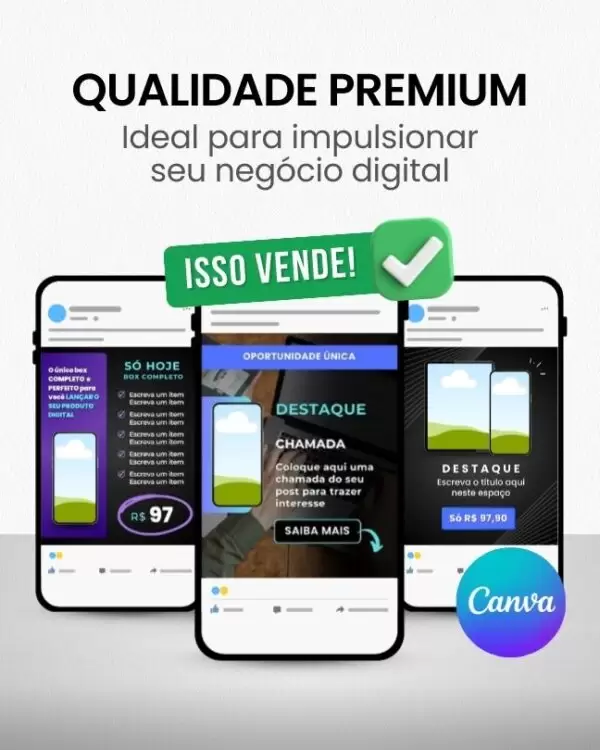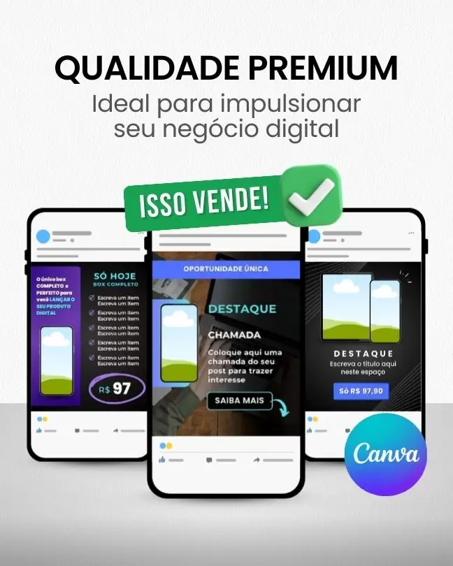 Sim, 100% feito para o Canva gratuito. Com nosso exclusivo Pacote de Criativos prontos para produtos de baixo valor (low ticket) 100% no Canva, você tem as ferramentas para se destacar no mercado online.
