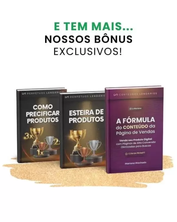 R: Ao adquirir, você recebe três bônus exclusivos: A Fórmula da Página de Vendas, um guia essencial para criar textos persuasivos; o Guia da Esteira de Produtos, para mapear a jornada do cliente; e Como Precificar Produtos, que o ajudará a definir o valor ideal para suas ofertas digitais, maximizando seu lucro.
